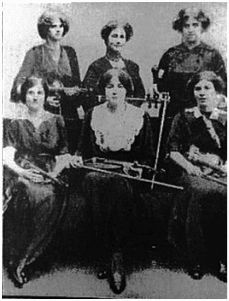 Outside of South Place, Clarke performed with other South Place women, including Myra Hess, Marjorie Hayward and May Mukle, hinting that the close networking apparent among the South Place musicians also played a role in her career. However, before Clarke first performed at South Place she was already a successful musician, notably having been selected as one of the first women to play in Henry Wood’s Queen’s Hall Orchestra in 1912, along with Jessie Grimson.