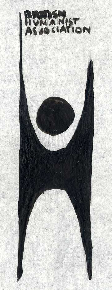 Here is the original design of the ‘Happy Human’ by Dennis Barrington, now the international symbol of humanism.