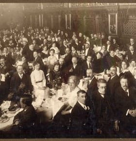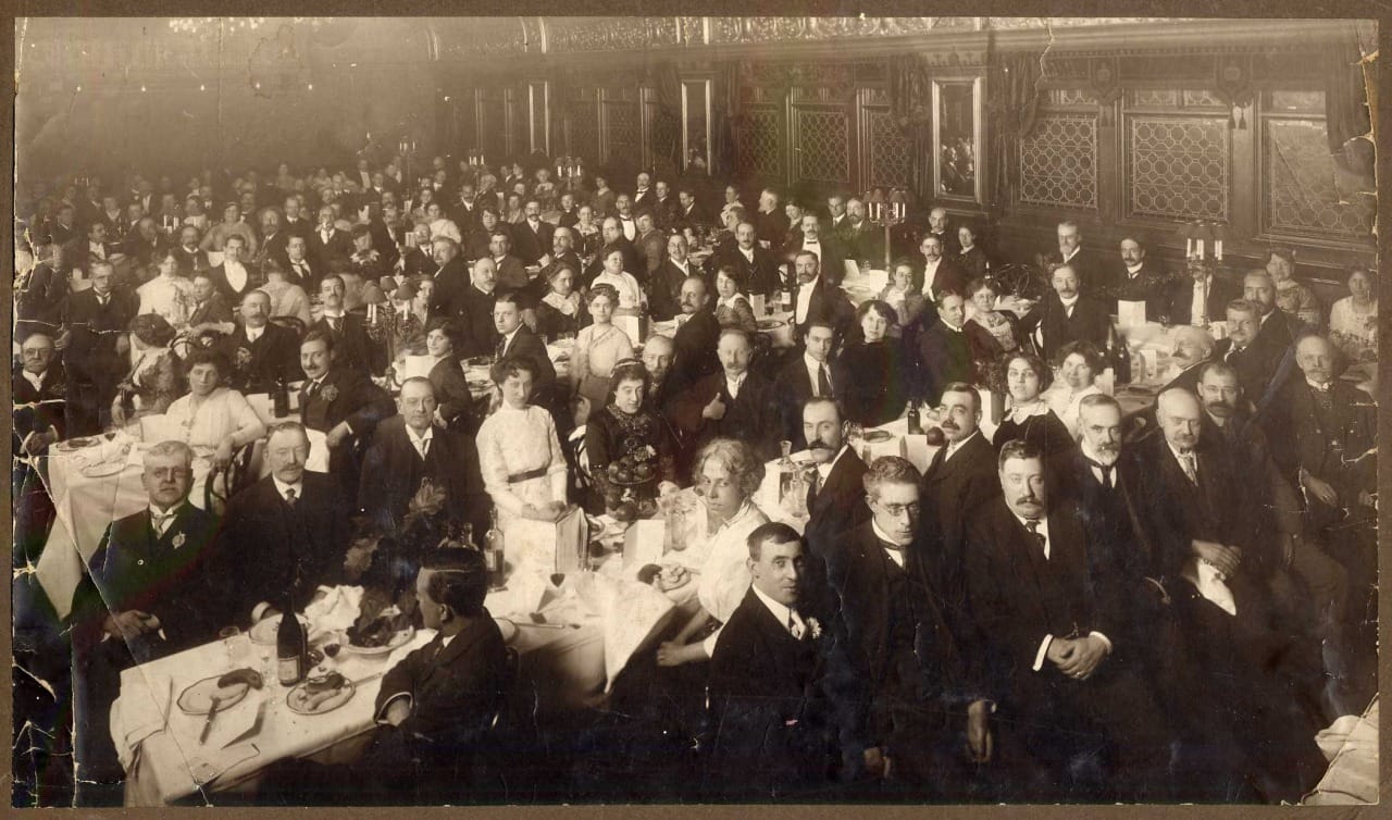 This photograph was taken at a dinner in memory Charles Bradlaugh in c.1910. Bradlaugh will be best remembered for having founded the National Secular Society, which he did in 1866, and his pioneering work to make artificial contraception widely available to those of all classes. Dinner guest included George Bernard Shaw, his wife Charlotte Shaw and Bradlaugh’s daughter Hypatia Bradlaugh Bonner. Top marks for anyone who can spot them. (Clue: they are hiding on the back row..)