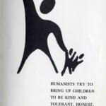 What is Humanism, c.1965. This trial leaflet from the BHA’s archive demonstrates the continuity of the Association’s message. But it also records an early attempt by the designers to use the newly created Happy Human symbol in a creative way.