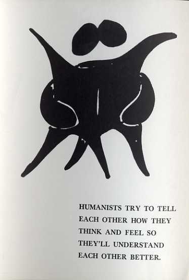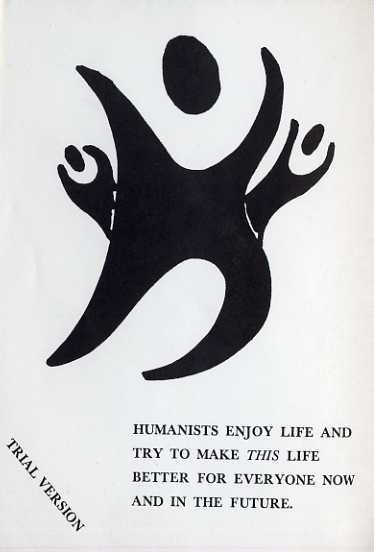 What is Humanism, c.1965. This trial leaflet from the BHA’s archive demonstrates the continuity of the Association’s message. But it also records an early attempt by the designers to use the newly created Happy Human symbol in a creative way.