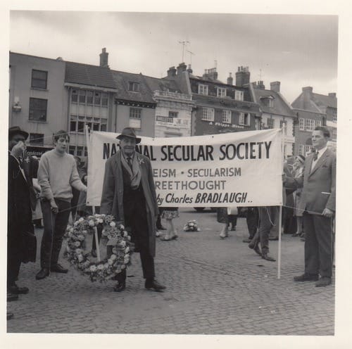 The National Secular Society was established by the political activist and atheist Charles Bradlaugh in 1886. The Society aimed to promote secularism and argued for a division between church and state. As a national organisation, it brought together smaller secularist groups from around the UK to help coordinate and strengthen their campaigns.