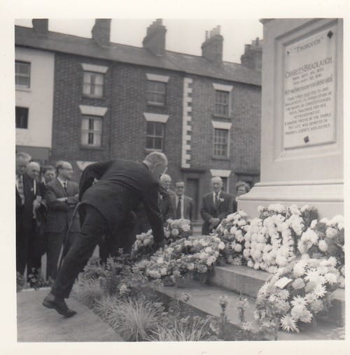 Bradlaugh’s statue stands in Abington Square, Northampton and his birthday, 26 September, is remembered every year. These photos from the National Secular Society Archive (held at Conway Hall), show members commemorating Bradlaugh at the statue in 1966.