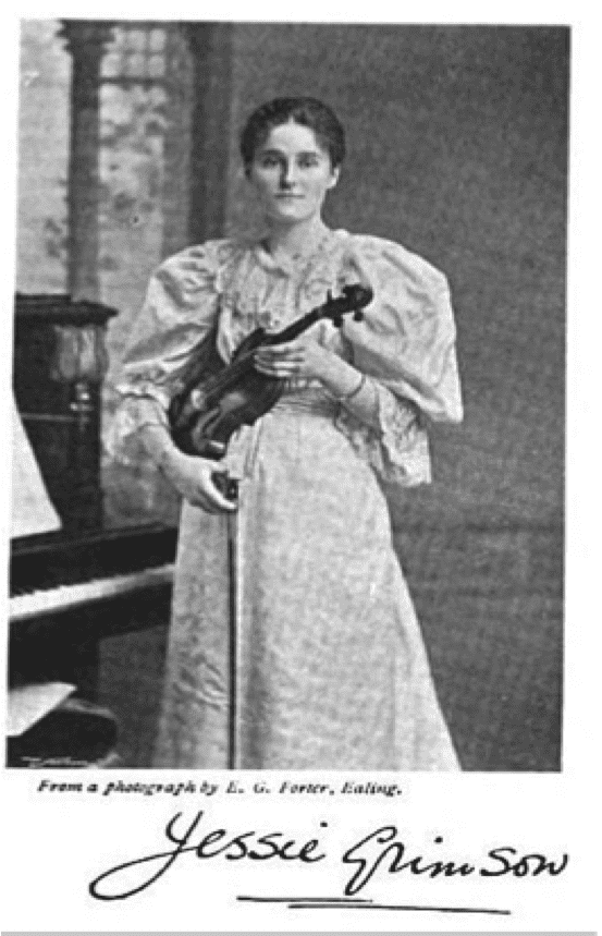 Jessie Grimson was a notable performer at South Place long before the war. She first appeared with her family ensemble in the 1890s, which consisted of six of her siblings and their father. The group appeared at the concerts regularly. Soon, Grimson set up her own quartet, leading three men (including the now well-known composer Frank Bridge), an unusual sight for audiences at the time!