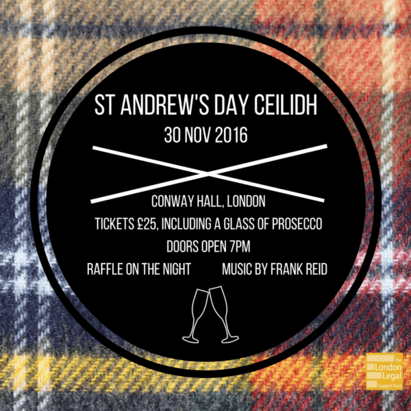 The London Legal Support Trust presents an evening of laughter, music and merriment! Join us to dance the night away to commemorate St Andrews Day. Join us for a festive ceilidh in support of access to justice! The Frank Reid ceilidh band will be providing the music for the night. Having appeared four times on BBC Radio […]